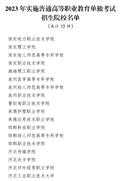 人民網石家莊12月3日電 (楊文娟)近日,河北省教育廳印發了關于做好2023年普通高等職業教育單獨考試招生工作的通知。通知明確,2023年高職單招采取統考計劃和對口計劃分開編列的方式進行,河北實施高職單招院校共計72所。