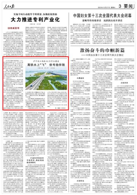 人民日報|滬寧沿江高鐵5G信號全覆蓋 高鐵水上“飛” 信號穩伴隨