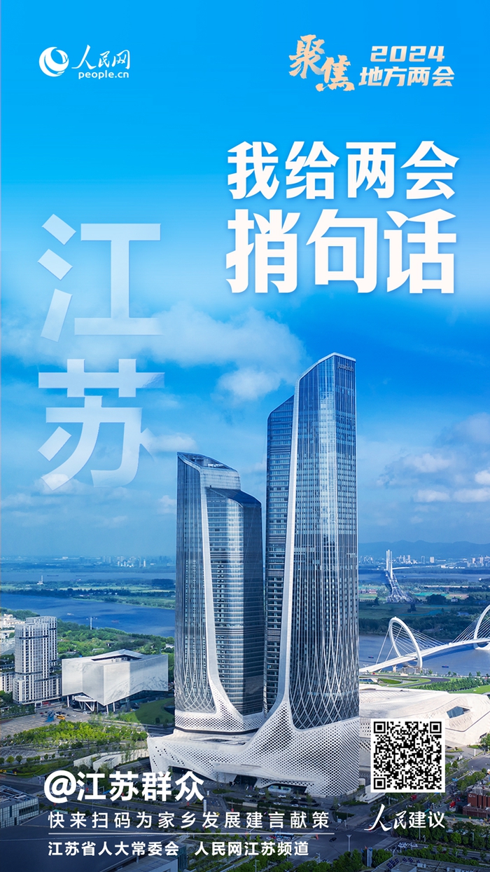 2024年江蘇省兩會(huì)即將召開(kāi)。為廣泛匯集社會(huì)各界關(guān)于經(jīng)濟(jì)發(fā)展、民生保障、教育人才、科技創(chuàng)新、農(nóng)業(yè)農(nóng)村現(xiàn)代化等方面的好建議,即日起,人民網(wǎng)聯(lián)合江蘇省人大常委會(huì)推出“我給江蘇兩會(huì)捎句話”大型建言征集活動(dòng),廣大網(wǎng)友可通過(guò)人民網(wǎng)“領(lǐng)導(dǎo)留言板”小程序、“人民網(wǎng)+”客戶(hù)端等渠道,為家鄉(xiāng)發(fā)展積極建言獻(xiàn)策。