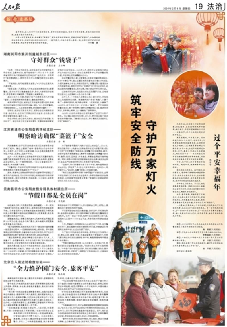 從深入社區(qū)宣傳反詐,保護群眾“錢袋子”,到扎進市場明察暗訪,守好過年的“菜籃子”;從加強巡護保證游客安全,到便利通關服務旅客出行……春節(jié)前夕,本報記者深入基層一線,記錄平安守護者們的忙碌身影,見證平安守護者們的堅守奉獻。