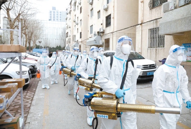 朝陽(yáng)藍(lán)天救援隊(duì)22名隊(duì)員近日換上防護(hù)服,走進(jìn)六里屯甜水西園等3個(gè)社區(qū),為社區(qū)做防疫消殺,以減輕社區(qū)和物業(yè)工作人員的壓力。隊(duì)員們穿著防護(hù)服、佩戴口罩、安全帽、橡膠手套,手持70多斤重的彌霧機(jī)和藥箱,采用地毯式噴灑消毒的方式,對(duì)社區(qū)封(管)控區(qū)的道路、綠化帶等區(qū)域進(jìn)行細(xì)致消殺,確保小區(qū)內(nèi)無死角、無盲區(qū)。