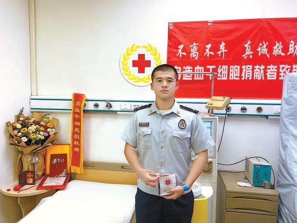 2021年5月,劉明航接到天津市紅十字會來電,他與一名2007年出生的血液病患者初配型成功,他毫不猶豫地回復愿意捐獻并前往天津,順利通過體檢和高分辨配型,并于同年6月完成捐獻。今年3月,他又接到北京市紅十字會的電話,患者病情出現了反復,需要再進行淋巴細胞移植鞏固治療?!爱斘医拥叫枰尉璜I的消息時,我心里其實沒有絲毫猶豫,因為我是一名消防員,聽到救人,是義無反顧的。”說服了母親,劉明航再次前往采集淋巴細胞的醫(yī)院。