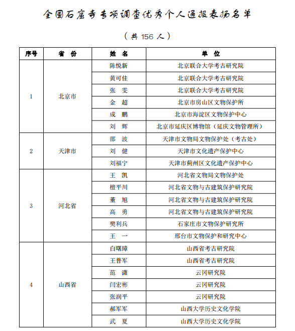 國(guó)家文物局通報(bào)表?yè)P(yáng)全國(guó)石窟寺專(zhuān)項(xiàng)調(diào)查先進(jìn)單位和優(yōu)秀個(gè)人