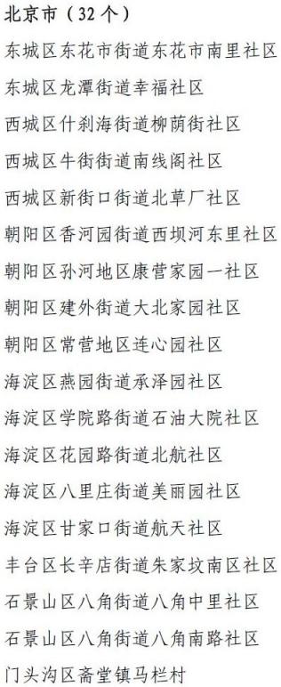 10月24日,國家衛生健康委和全國老齡辦聯合發布《關于命名2022年全國示范性老年友好型社區的通知》,公布了2022年全國示范性老年友好型社區名單,其中北京有32個社區入圍。