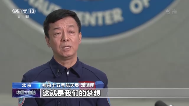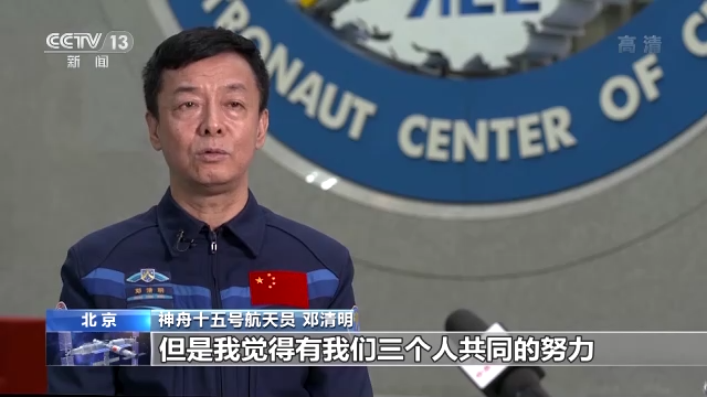 神舟十五號航天員 鄧清明:壓力是肯定有,但是我覺得有我們三個人共同的努力,有天地之間大協作,有地面的支持,這種壓力不算什么。我還是喜歡干有挑戰性的活,人生因奮斗而精彩,講的就是這個意思。