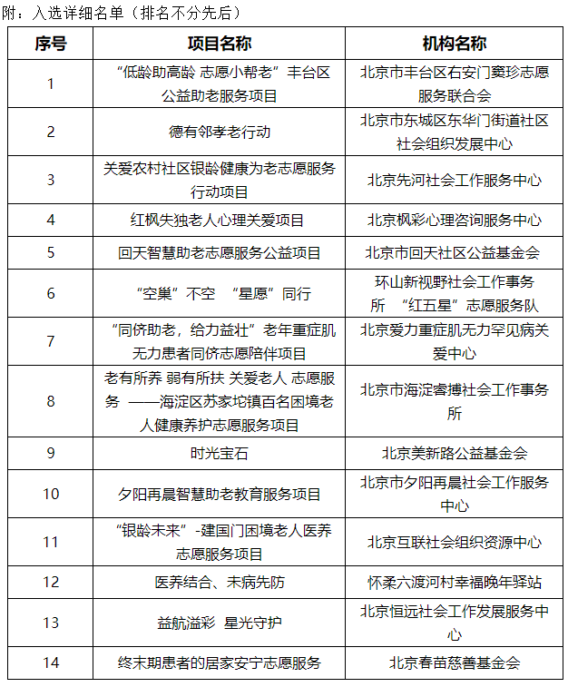 北京:14個養老志愿服務項目入選“銀齡伙伴”資助名單