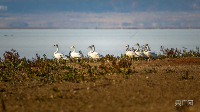 數百只小天鵝自由自在地徜徉于湖畔淺灘(央廣網發 陳扶南 攝)