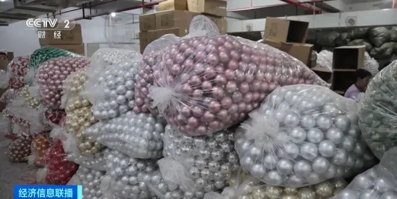 在義烏一家生產圣誕球的企業里,工人們忙著把剛剛組裝完的成品運往倉庫。負責人告訴記者,今年他們的訂單同比增長30%左右。