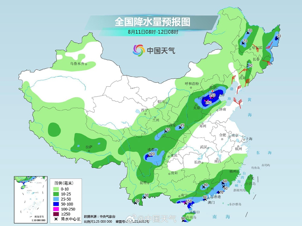 受高空槽東移和低渦切變系統共同影響,今明兩天(8月11日至12日),京津冀地區將再度遭遇新一輪強降雨天氣過程,部分地區雨勢強勁,需注意防范。