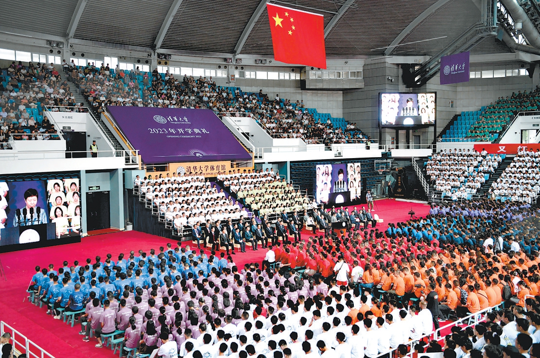 24日,清華大學3800余名2023級本科新生迎來開學典禮。校長王希勤帶來開學第一課,他以老清華人求真務實、無私奉獻的故事為例,講授“行勝于言”的原則,勉勵新生勤而行之、日有所進。