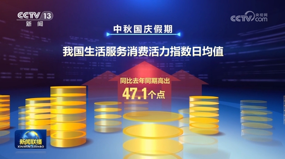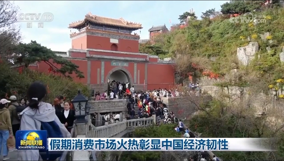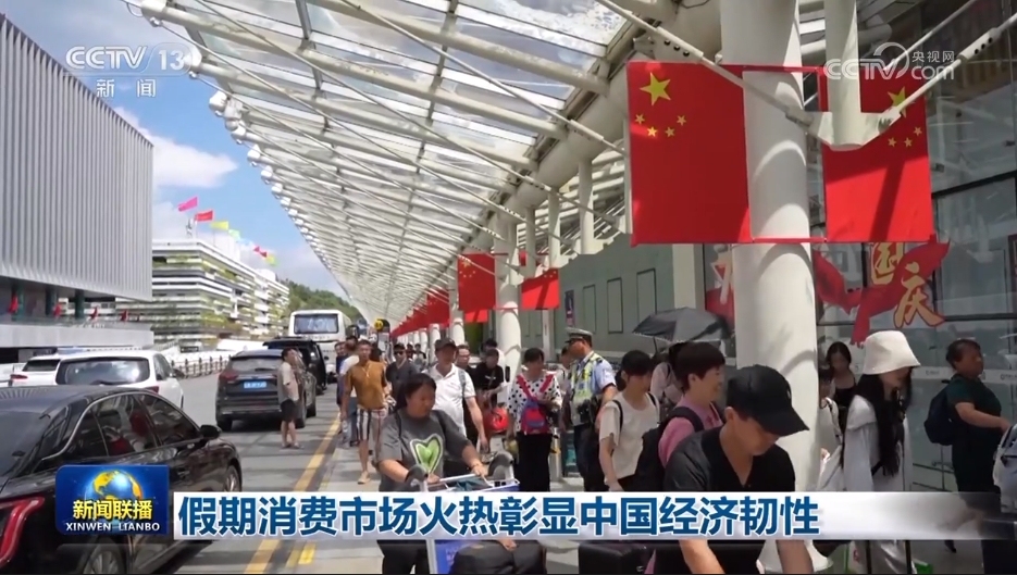 央視網消息(新聞聯播):中秋國慶假期,強勁需求和優質供給雙向發力,城鄉市場人氣旺盛、活力澎湃,有力釋放多層次多樣化消費需求,彰顯出中國經濟的強大韌性。