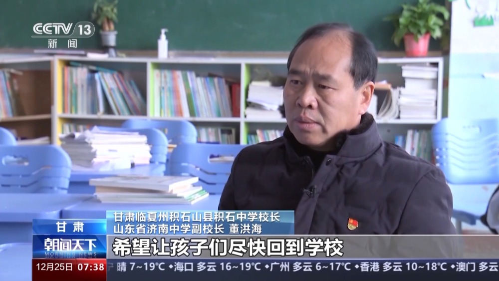 甘肅臨夏州積石山縣積石中學副校長 張曉斌:這幾天一直連軸轉,重點是看暖氣,146個教室、辦公室、功能處室,如果一條線凍了,整條線凍,整棟樓凍。
