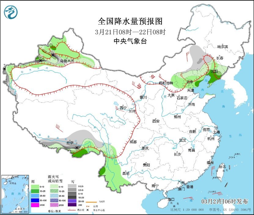 央視網(wǎng)消息:據(jù)中央氣象臺(tái)網(wǎng)站消息,昨日,降水主要出現(xiàn)在新疆北部和西藏東南部等地,其中西藏帕里降水量27毫米。預(yù)計(jì)未來三天,我國(guó)的降水將日漸增多,新疆北部、西藏東南部、內(nèi)蒙古東部、華北北部、東北地區(qū)等地有明顯雨雪天氣。此外,公眾還需關(guān)注22日夜間起影響我國(guó)的冷空氣給中東部帶來的大風(fēng)、降溫和雨雪天氣。