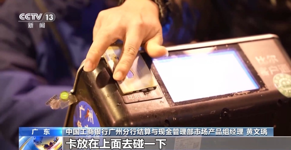 中國工商銀行廣州分行結算與現金管理部市場產品組經理 黃文瑀:卡放在上面去碰一下,做一個身份識別,然后再把商品放在秤上面去稱重。可以看到整個交易的總金額是多少,實時同步到我們這邊,去完成買賣雙方賬戶資金的轉賬。