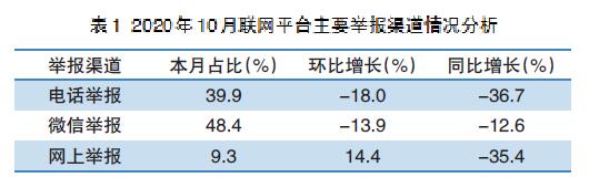 從各地區不同渠道舉報數量看,廣東、河南、重慶等地舉報總量居前列,河南、重慶、上海等地電話舉報占比較高,廣東、江蘇、河南等地微信舉報占比較高。