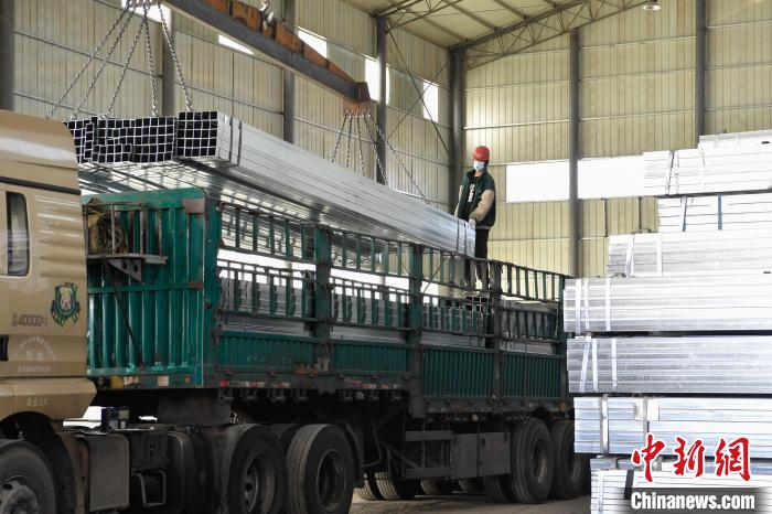 圖為物流園區,工人裝卸鋼材。貢嘎來松 攝