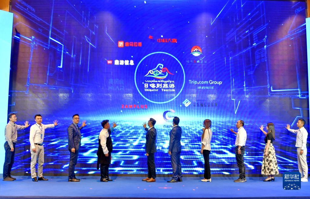 在2022年西藏日喀則旅游推介會暨數字旅游創新發展論壇上,日喀則旅游大數據中心揭牌(7月15日攝)。新華社記者 張汝鋒 攝