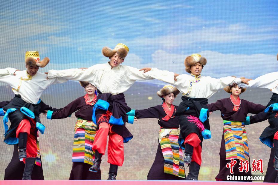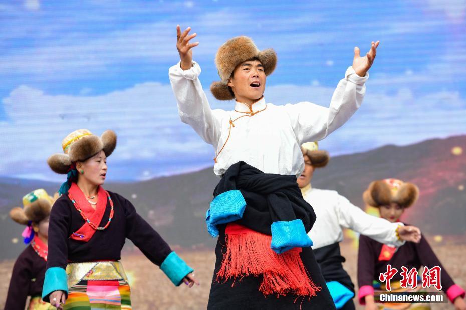 9月23日,“中國農(nóng)民豐收節(jié)”西藏慶祝活動在拉薩市墨竹工卡縣舉行,當(dāng)?shù)孛癖娸d歌載舞,慶祝“豐收節(jié)”。 中新社記者 貢嘎來松 攝