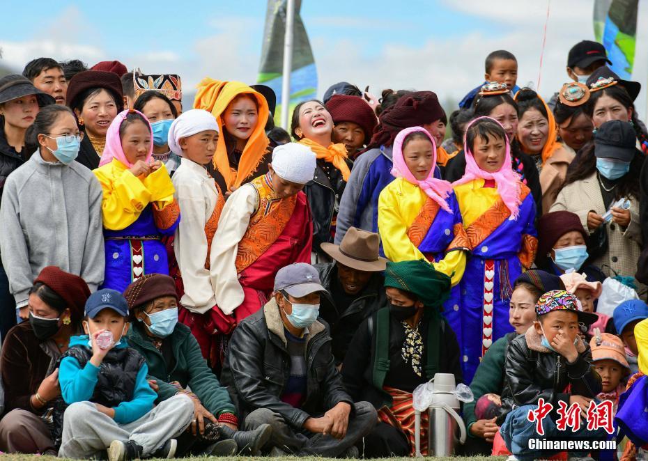 9月23日,“中國農(nóng)民豐收節(jié)”西藏慶祝活動在拉薩市墨竹工卡縣舉行,當(dāng)?shù)孛癖娸d歌載舞,慶祝“豐收節(jié)”。圖為慶祝活動吸引大批觀眾。 中新社記者 貢嘎來松 攝