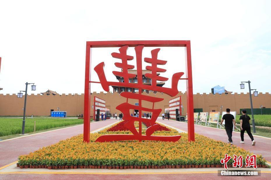 9月23日,航拍寧夏賀蘭縣創(chuàng)意稻田。當(dāng)日是第四個中國農(nóng)民豐收節(jié),寧夏多地舉行慶祝農(nóng)民豐收節(jié)活動。(無人機(jī)照片) 中新社記者 謝宇 攝