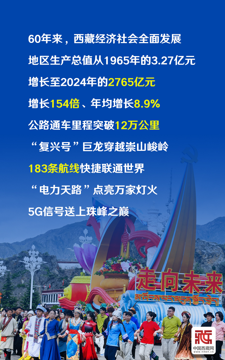 60年來,西藏經濟社會全面發展,各族人民生活蒸蒸日上,生態文明建設成效顯著,民族團結日益鞏固,中華民族共同體意識深入人心,宗教信仰自由得到充分尊重和保障,文化事業繁榮發展。(中國西藏網 記者/王淑 馮重霖 邊子捷 趙振宇 德吉卓瑪 次旦拉姆 旦曲 賈華加 趙釗 姚浩然 劉莉 楊眉笑 海報制作/趙佳)