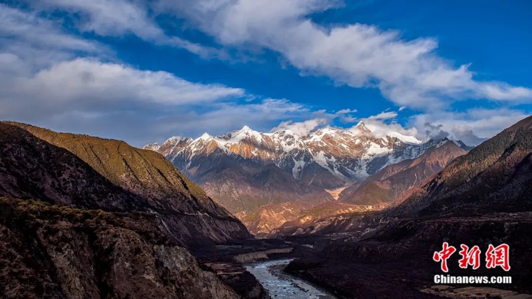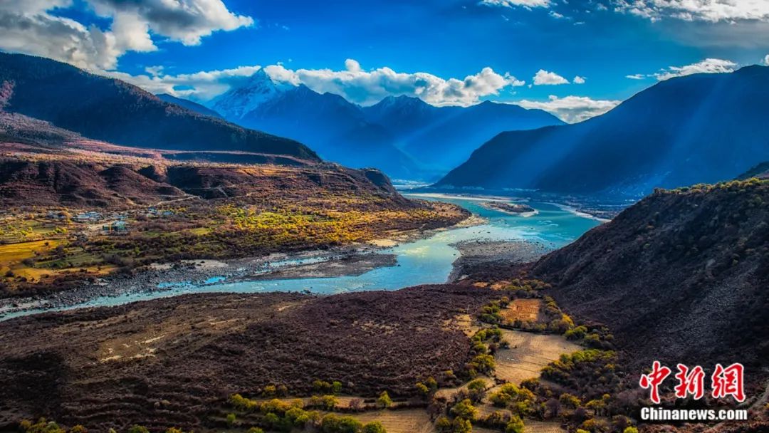 時值秋末冬初,全長504.6公里,最深處6009米的雅魯藏布大峽谷呈現出別樣巍峨壯觀,兩岸五彩交織的森林上雪峰林立,谷底奔涌的雅魯藏布江碧水繞田,宛若童話中的仙境。