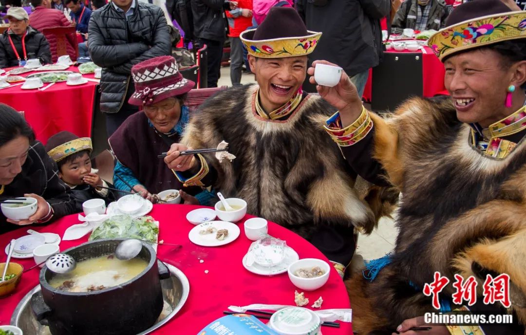 圖為民眾互敬青稞酒,歡度工布新年。何蓬磊 攝