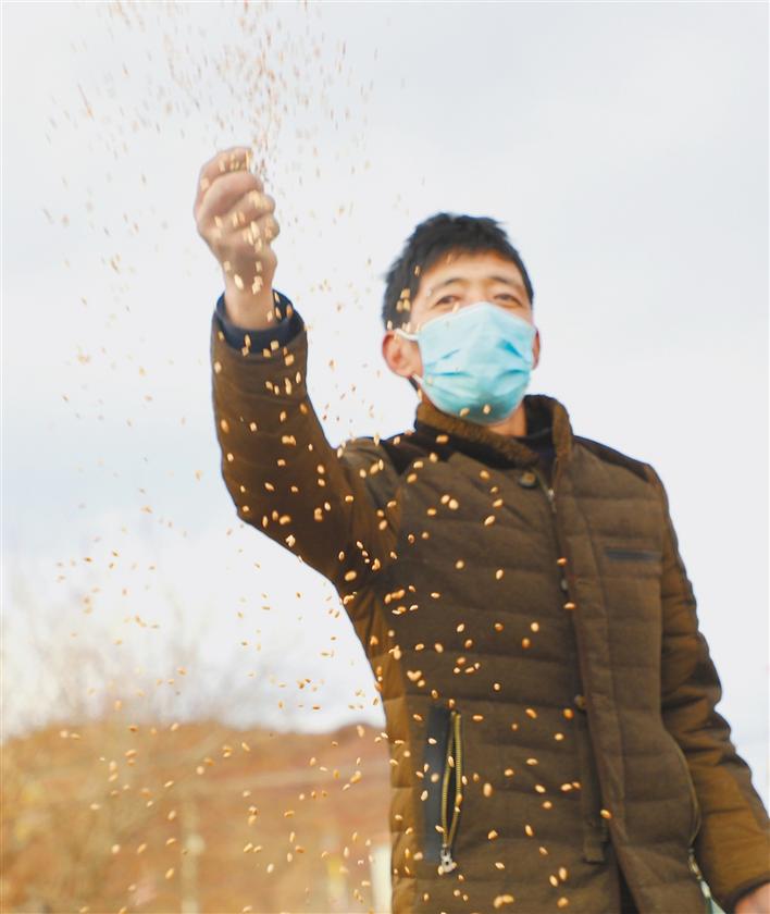 巡護員多布杰為棲息在林周縣境內的候鳥投食。