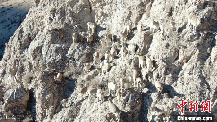 12月中旬,在地處祁連山區的甘肅肅南縣祁豐藏族鄉吊達坂附近,肅南縣融媒體中心記者拍攝到數群巖羊在公路旁的山坡上悠閑覓食。據目測,此次拍到公路旁覓食巖羊約有200多只。巖羊是國家二級重點保護野生動物,體型中等,形態介于野山羊與野綿羊之間。巖羊具有極高的攀巖技術,可以在絕壁上自由跳躍,一跳可達二三米,因此也被稱為“巖壁上的精靈”。近年來,肅南縣深入推進祁連山國家級自然保護區生態文明建設,加強保護區管理,實施退牧還草等措施,當地生態環境逐步改善,民眾保護意識不斷增強,使得當地野生動物數量逐年增加。