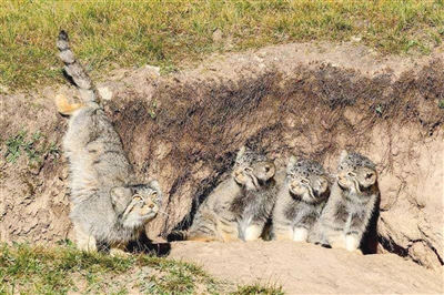 早上8時左右,五六十米外的巢穴中有了動靜,1只兔猻媽媽帶著3只小兔猻出來覓食,和諧的場景沒持續多久就被遠處虎視眈眈而來的藏狐打破了。兔猻媽媽警惕地盯著藏狐,發出短促的警報聲,3只小兔猻迅速奔回洞穴,攝影師順勢按下快門,《當媽媽說跑步前進》由此而來。
