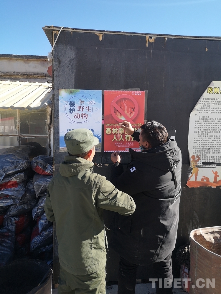 圖為改則縣林業和草原局巡護人員粘貼宣傳海報
