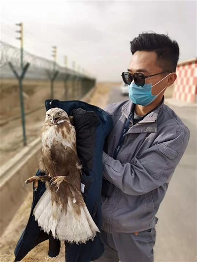 日前,一只受傷的大鵟因體力不支不慎“降落”西寧機場飛行區,正當它無助之時,被青海機場公司的驅鳥員發現,最終在驅鳥員的救助下,受傷的大鵟被移交至青海野生動物救護中心(西寧野生動物園)進行治療。