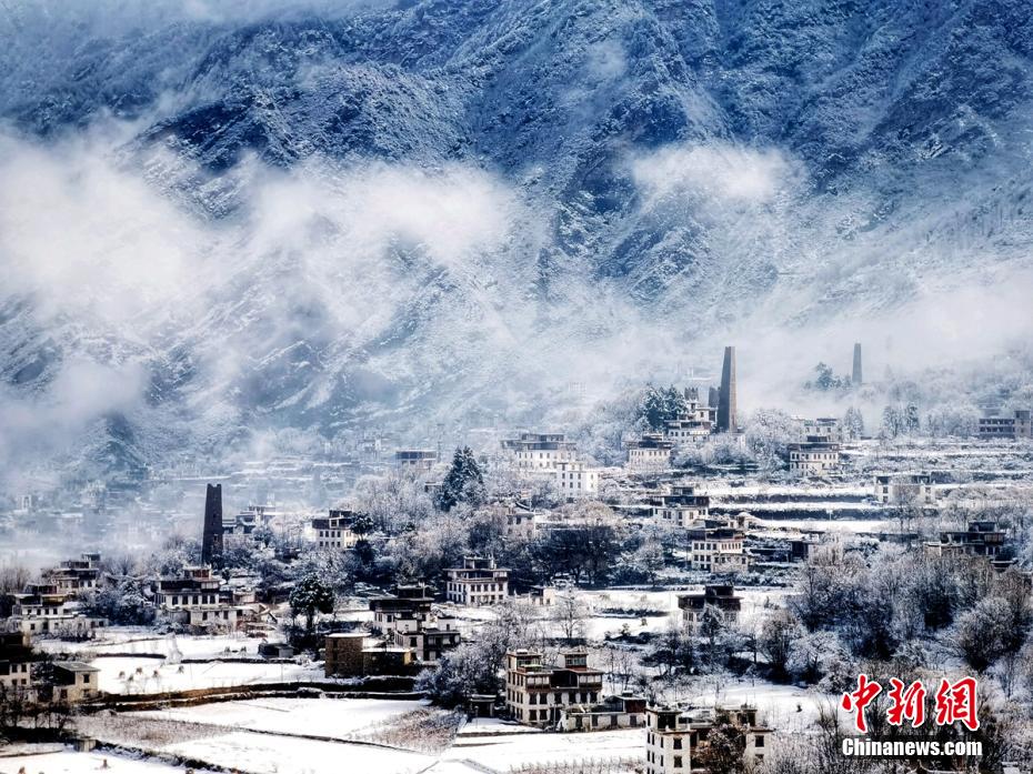 圖為丹巴藏寨披上一層“白紗”。 吉進(jìn) 攝