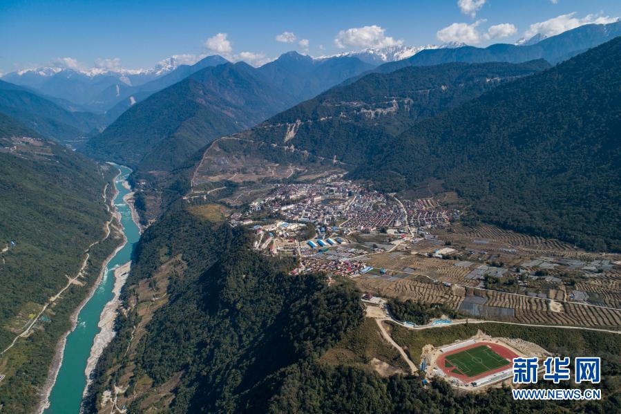 這是墨脫縣城,左側(cè)河流為雅魯藏布江(2月13日攝,無人機(jī)照片)。新華社記者 孫非 攝