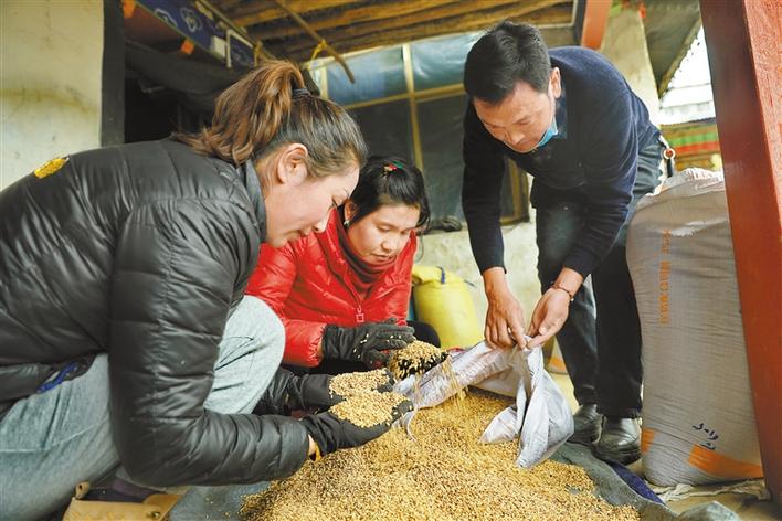 圖為墨竹工卡縣農業農村局(農業技術推廣站)工作人員選購青稞種子。洛??酥?唐斌 攝