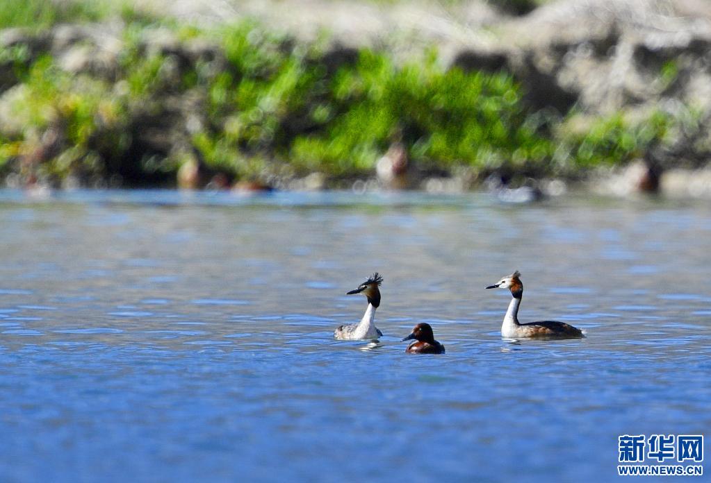 夏日里,鳳頭??和小??在西藏拉薩拉魯濕地國(guó)家級(jí)自然保護(hù)區(qū)水面上嬉戲。