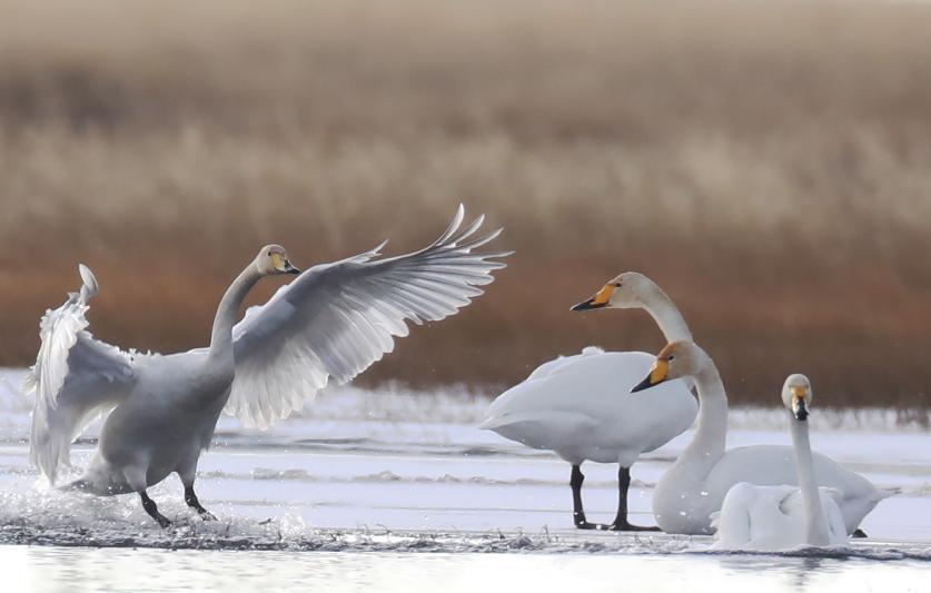 連日來,成群的野生大天鵝陸續飛臨四川省阿壩州若爾蓋縣高原小鎮麥溪鄉的洛賈瓊果河棲息越冬。[詳細] -