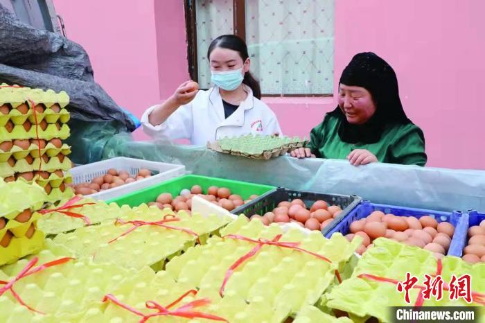 圖為青海貴德縣新街鄉林下雞養殖合作社收獲雞蛋。才讓本 攝