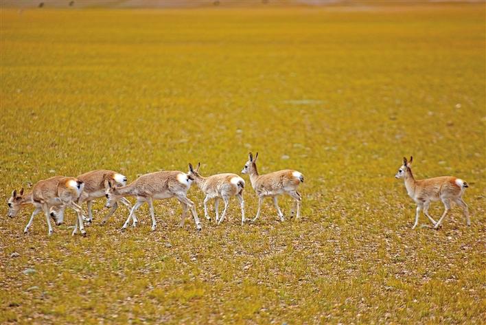 在羌塘國家級自然保護區拍攝的藏羚羊。新華社記者 孫瑞博 攝