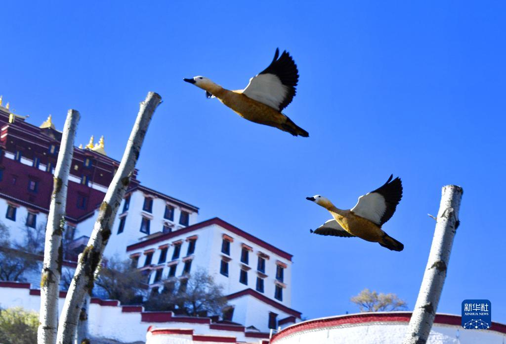 初冬時節,被譽為“日光城”的拉薩晴空萬里。布達拉宮腳下的龍王潭公園里,候鳥翔集,生機無限。