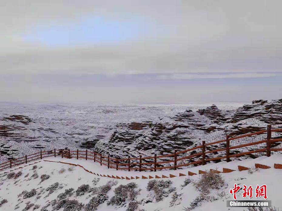 11月21日,甘肅省張掖市平山湖大峽谷內,一場冬雪過后,白雪覆蓋在紅色的沙石山上,遠遠望去像落了一場紅色的雪,美不勝收。平山湖大峽谷地質構造屬于紅層地貌,一般稱為“紅色砂礫巖”,距今已有一億八百萬年至兩億四千萬年。 周小珍 攝