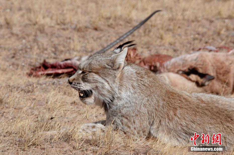 12月1日,三江源國家公園長江源園區曲麻萊管理處生態環境和自然資源管理局局長尕塔介紹,青海省玉樹藏族自治州曲麻萊縣生態管護人員卓瑪加,日前在該縣拍攝到國家二級重點保護野生動物猞猁獵食國家一級重點保護野生動物藏羚羊的畫面。據悉,猞猁獵捕藏羚羊的畫面,少有被人拍攝。猞猁外形似貓,但比貓大,屬于中型的猛獸,其耳朵尖端長著聳立的深色叢毛。卓瑪加 攝