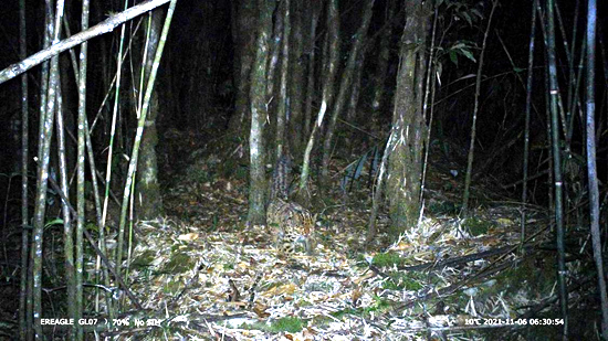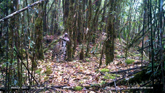 2020年10月-2021年11月,為調查和補充該區(qū)域鳥獸多樣性數(shù)據(jù),調查人員在保護區(qū)內(nèi)的墨脫縣、波密縣、米林縣選擇6個海拔不同的樣區(qū),布設80臺紅外相機。2021年11月,調查人員共回收相機213臺次,紅外相機工作25778天,記錄到野生動物80種(獸類36種,鳥類44種),其中國家I級保護動物共14種:云豹、豺、金貓、大靈貓、喜馬拉雅鬣羚、不丹羚牛、赤斑羚、棕尾虹雉、白尾梢虹雉、灰腹角雉、黃喉雉鶉、林麝、馬麝、黑麝。以及國家II級保護動物22種。