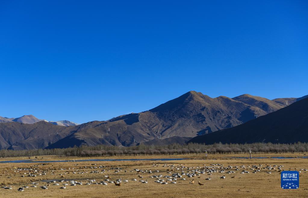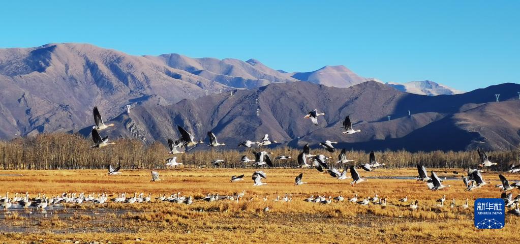 唐嘎鄉(xiāng)位于拉薩市達(dá)孜區(qū)東北部,這里每年冬季都會(huì)迎來黑頸鶴、斑頭雁、赤麻鴨等候鳥。這些在此越冬的“客人”和周邊的田園、濕地共同構(gòu)成高原冬季美景。