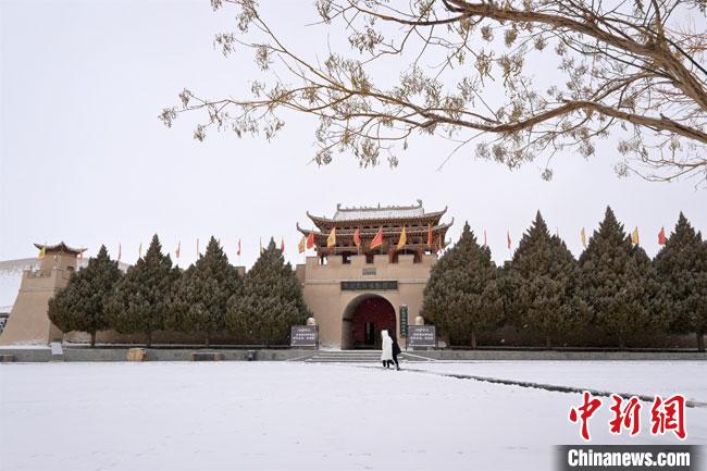 17日,絲綢之路國際旅游名城甘肅敦煌境內大漠山川被皚皚白雪覆蓋,像一幅幅清秀淡雅的水墨山水畫。游客紛紛前來敦煌著名風景區——鳴沙山月牙泉景區欣賞難得一見的大漠雪景。