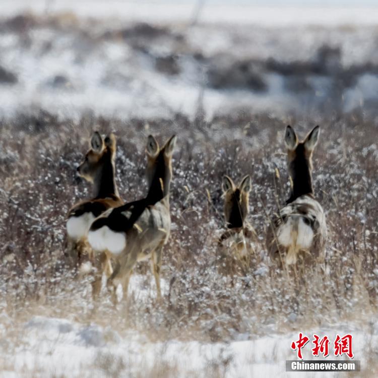 近日,在甘肅張掖,一場降雪過后,祁連山下的山丹軍馬場白雪覆蓋大地。初春的山丹馬場,被一層薄薄的春雪覆蓋,雪原之上,狍鹿們開啟了它們的“狂歡模式”,盡情嬉戲打鬧,肆意撒歡奔跑。隨處可見的狍鹿或吃草、或撒歡、或靜臥,展現(xiàn)出一幅幅人與自然和諧共生的動人畫面。 郭正賢 攝