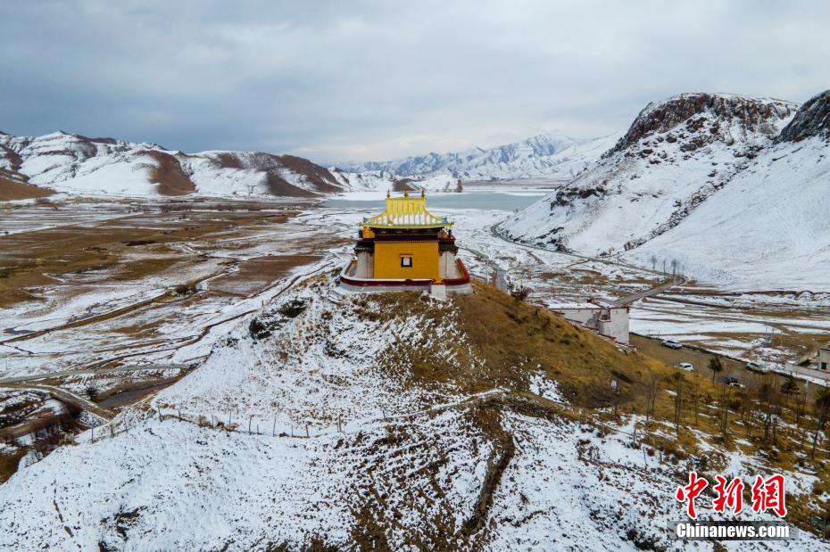 2月23日,航拍西藏林周縣楚杰寺雪后風光。 澎波河是拉薩河的主要支流之一,位于拉薩市林周縣,是拉薩青稞主產區。近日,澎波河谷迎來大范圍降雪,河灘、農田、村落、山谷等均被積雪覆蓋,猶如披上了一層“白紗”,一派高原冰雪風光,十分壯美。江飛波 攝
