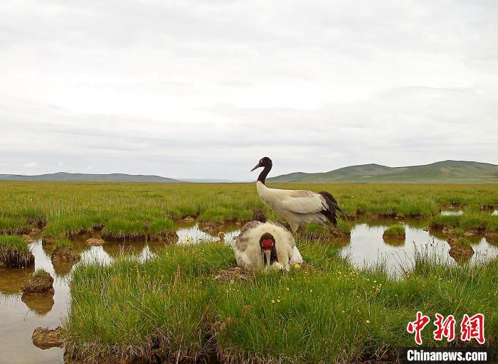圖為黃河源頭瑪多境內濕地的黑鶴。 瑪多縣委宣傳部 供圖