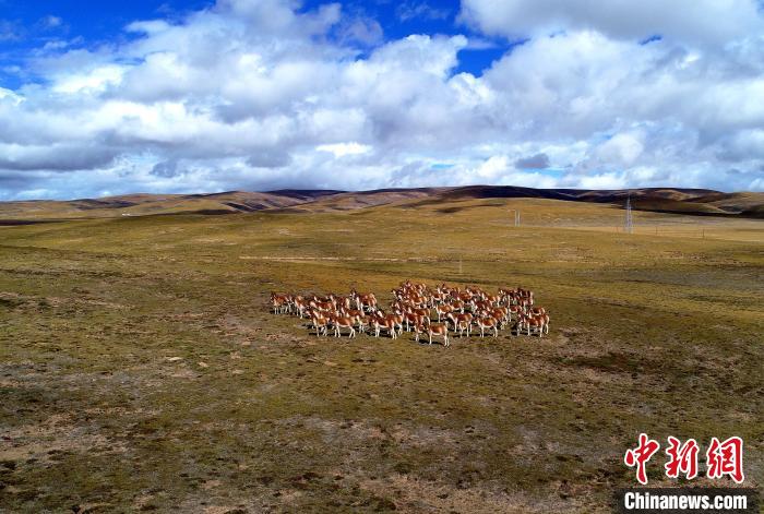 圖為三江源國家公園黃河源園區內的藏野驢群。 瑪多縣委宣傳部 供圖