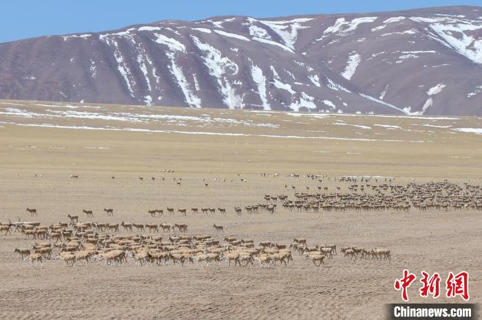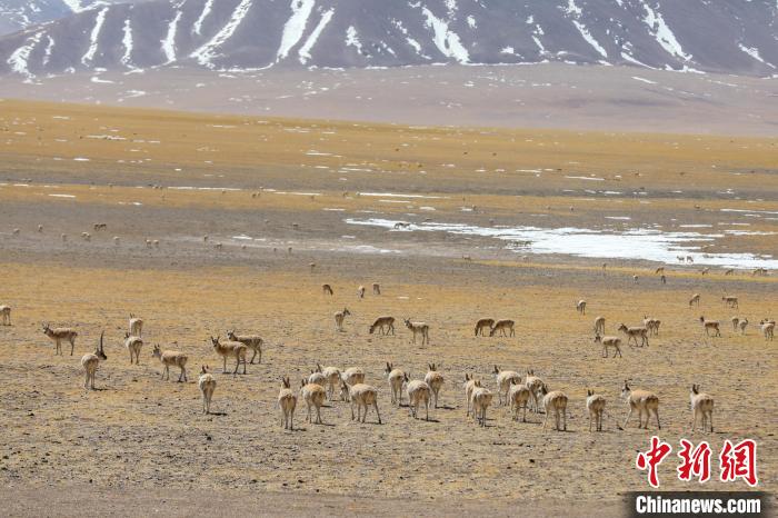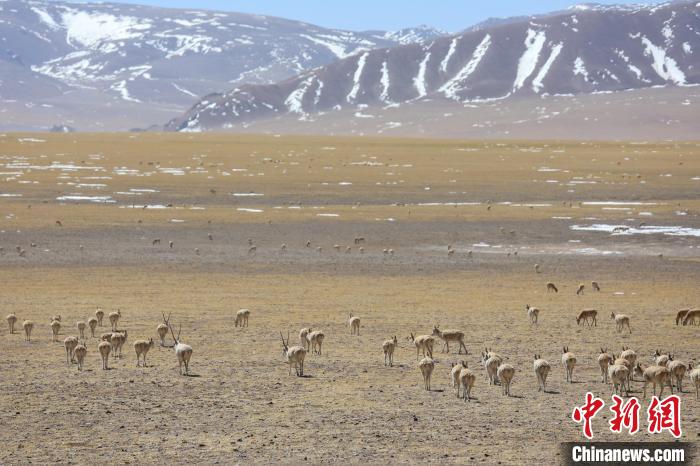 圖為3月27日,西藏改則縣先遣鄉(xiāng)附近的藏羚羊種群。 邊巴 攝
